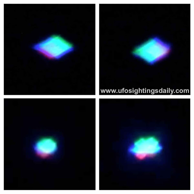 from what i can tell first of all the picture posted has been altered from the original because the original shows rain drops! yup rain drops and thats what this ufo is, its just light reflecting on raindrops..
