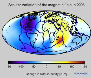 Unfortunately much is going wrong and the odds are increasing more will go wrong. Driving part of the rising danger is the unstoppable, accelerating shift of the Earth’s magnetic poles. The magnetic field acts as a shield protecting humans’ new fragile electronic technology from permutations of the sun and spikes in the solar wind that can envelop Earth with electrified plasma. If the field is breached, the electronic infrastructure will collapse, civilization will collapse, and millions of deaths will follow…