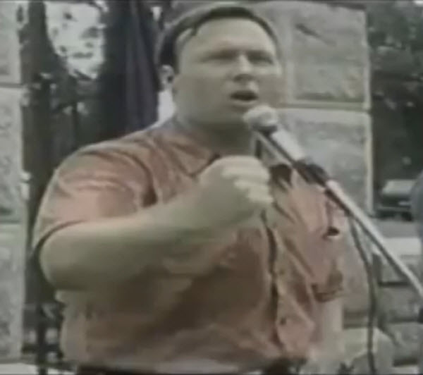 In 1997, we find our first videos of Alex Jones. Before this, we were unable to find any proof of his existence, other than school photos which looked nothing like the Alex Jones we know today. This was shocking because of what we had discovered next.